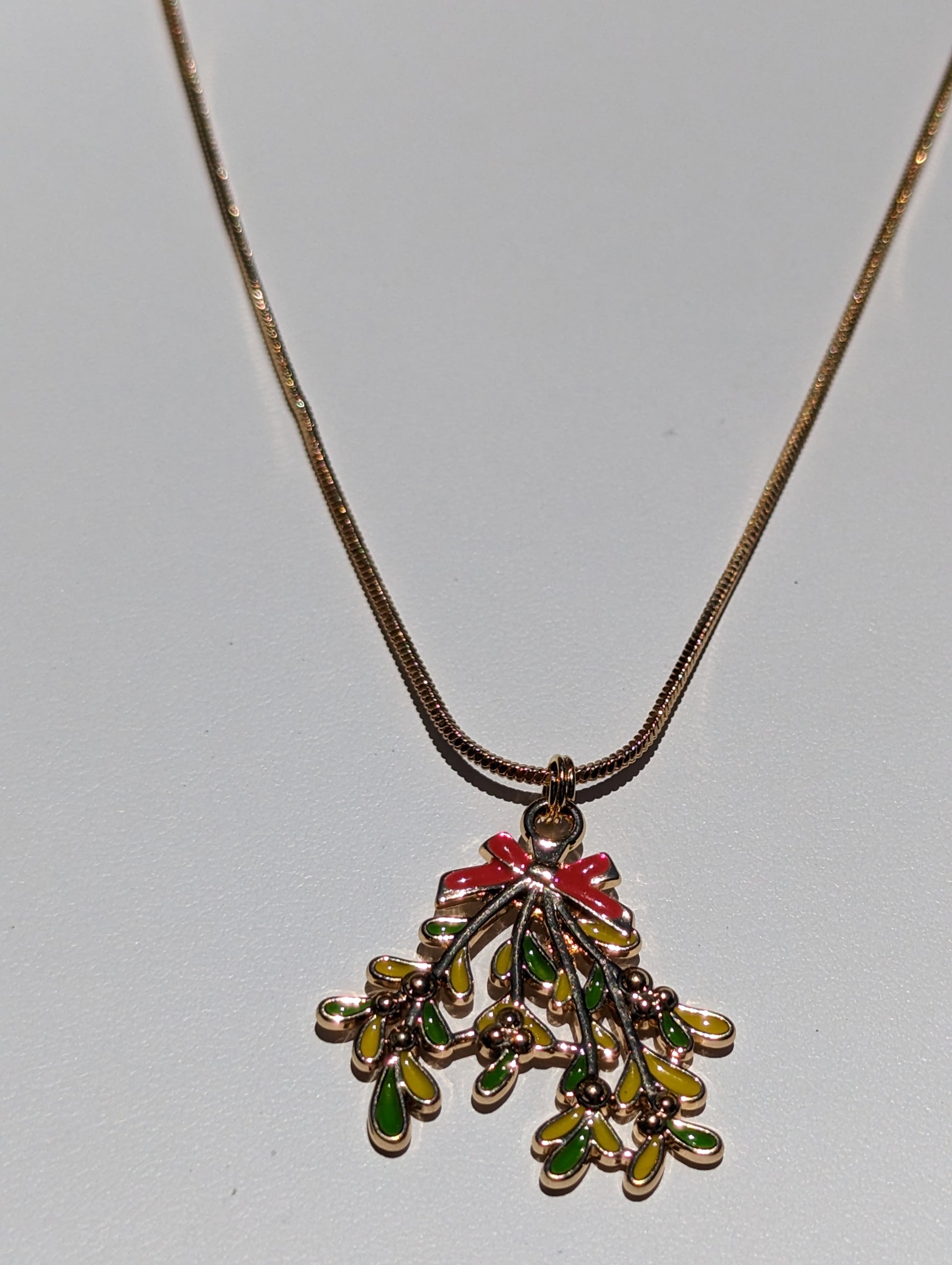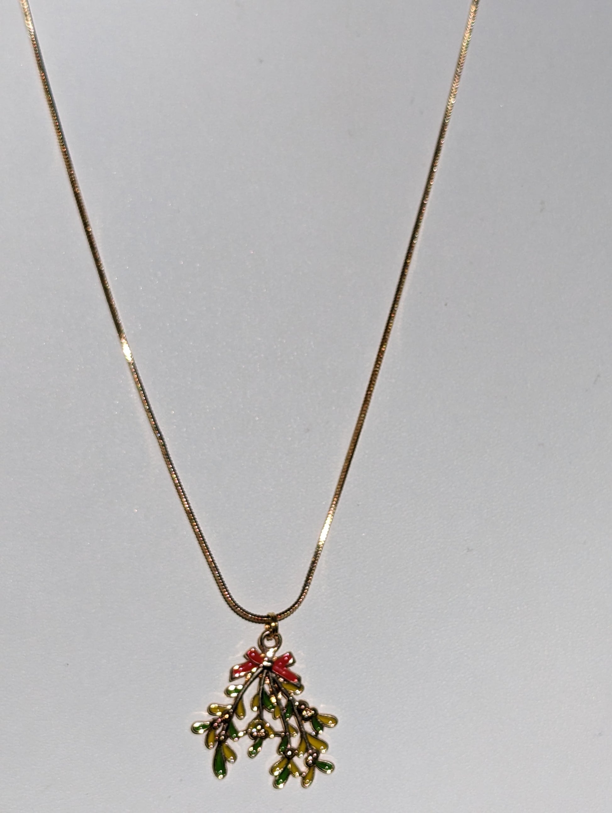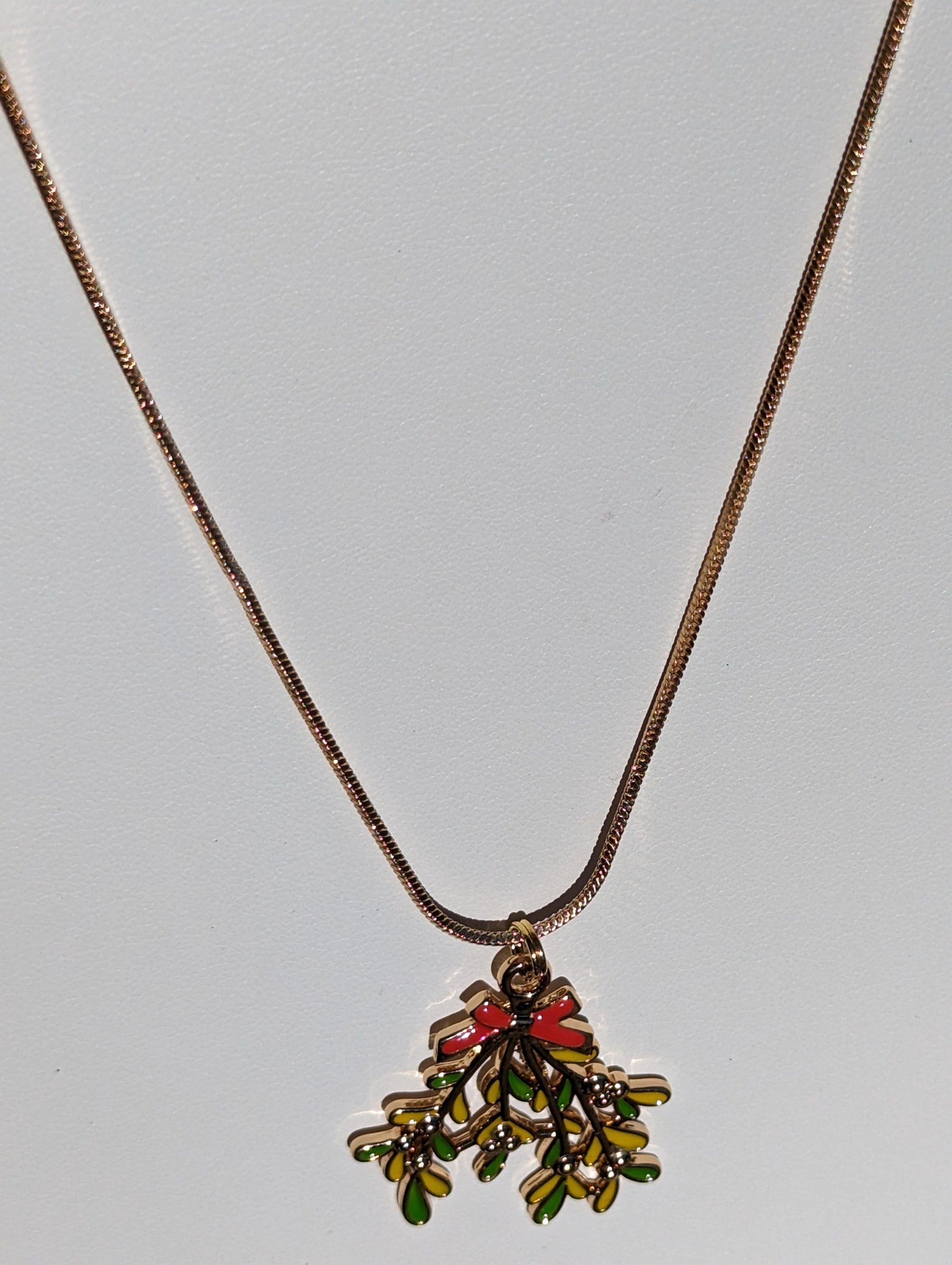 Get ready to be kissed with this gold-tone necklace that features a golden mistletoe pendant. Necklace measures 16 inches with 3-inch extender. Pendant measures 1.25 inches high and 1.25 inches across.